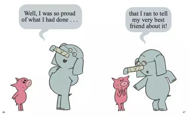 此时的小猪就像现实中真正的“好基友”那样,第一反应不是安慰小象,而是跑去告诉其他人小象的“糗事”!