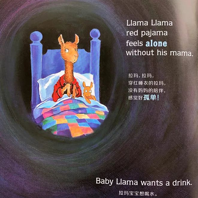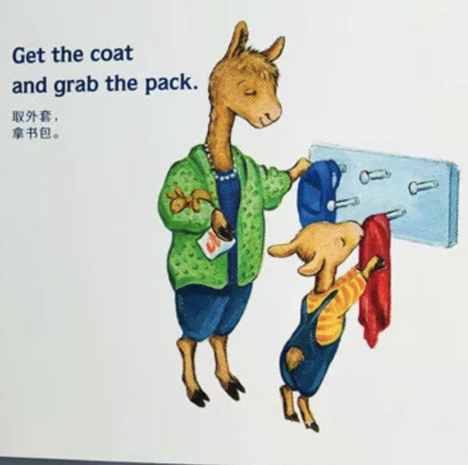 大家可以试着读读看,下面这些都是简单的英文句子,韵律感很强。特别有意思的是,羊驼拉玛的中文翻译,在准确的同时,也在力求押韵!