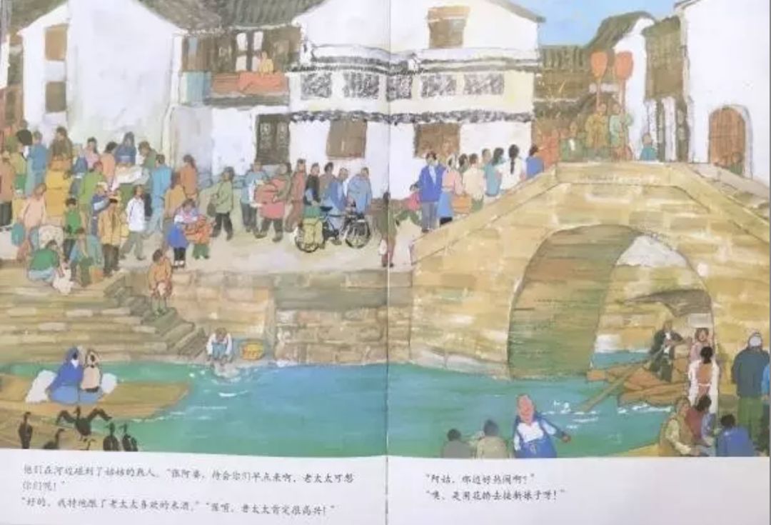 上面这本是以前推荐过很多次的中国原创绘本《荷花镇的早市》。相比于学习语言本身,其实我更希望孩子从有趣的绘本中了解到更大的世界,以及在不同的时空中会发生什么样的故事。