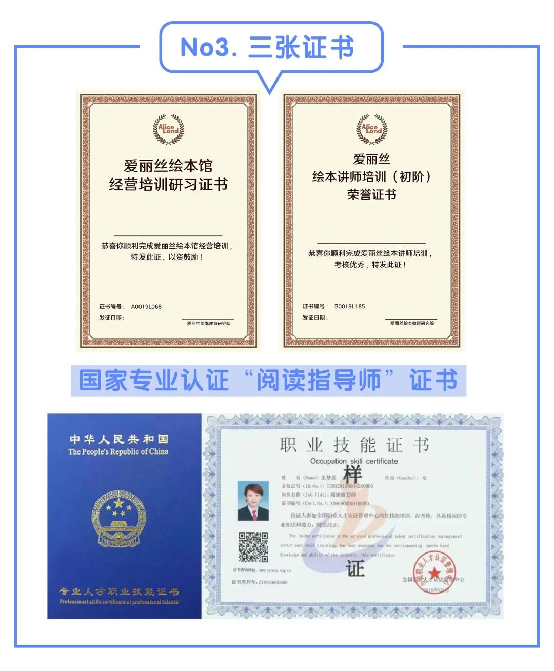 第三张证书国家专业认证“阅读指导师”职业技能证于培训结束后自愿领取,需补交证书工本费并提供二寸蓝底照片(电子版),快递到家,邮费自理。