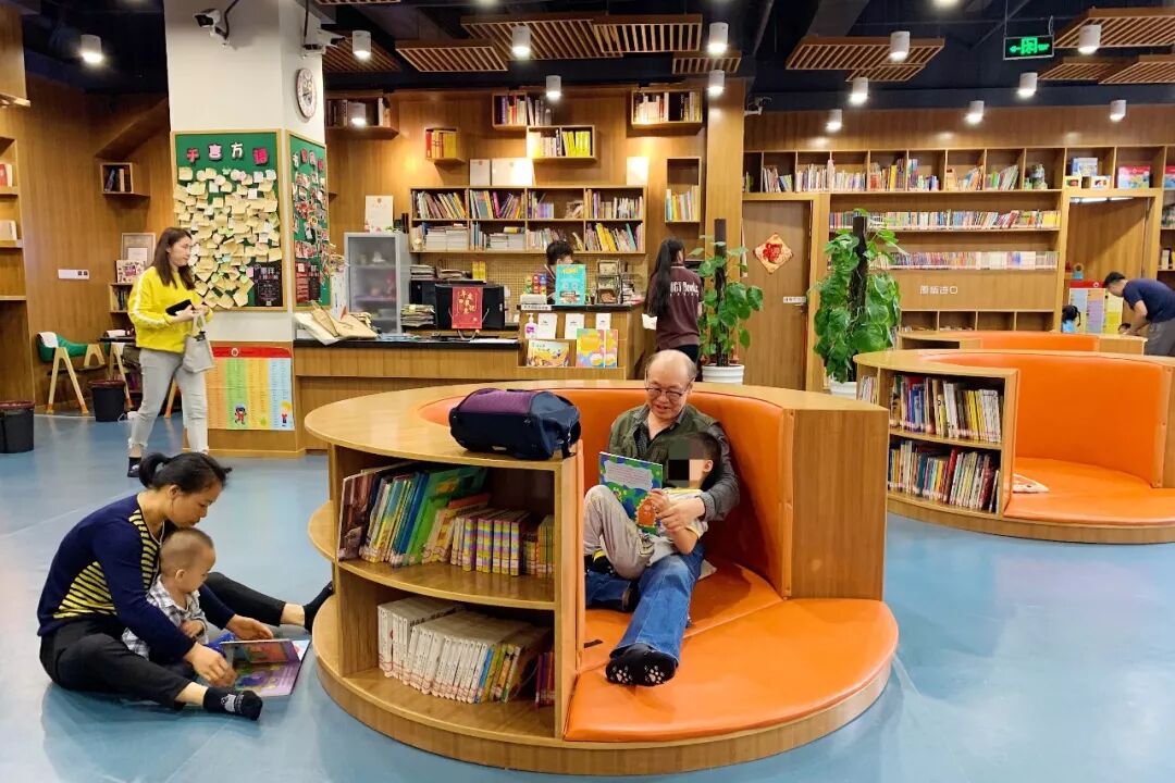 我们去到位于福田侨香的独立馆,周边是商超和饮食店,倒是没看到跟儿童有关的商铺。阅读馆不算大,但整体干净、舒适,进入馆内需要脱鞋。