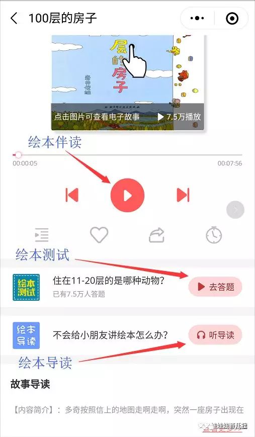 5、精品课程的不断更新和研发娃娃绘本馆致力于幼儿绘本阅读推广,为了让更多孩子爱上阅读,积极研发绘本课程教案,绘本互动动画课程,邀请央视主持人丸子姐姐录制语音伴读,同时还有语音导读体系,绘本测试小课堂等等。