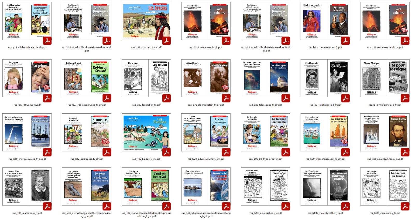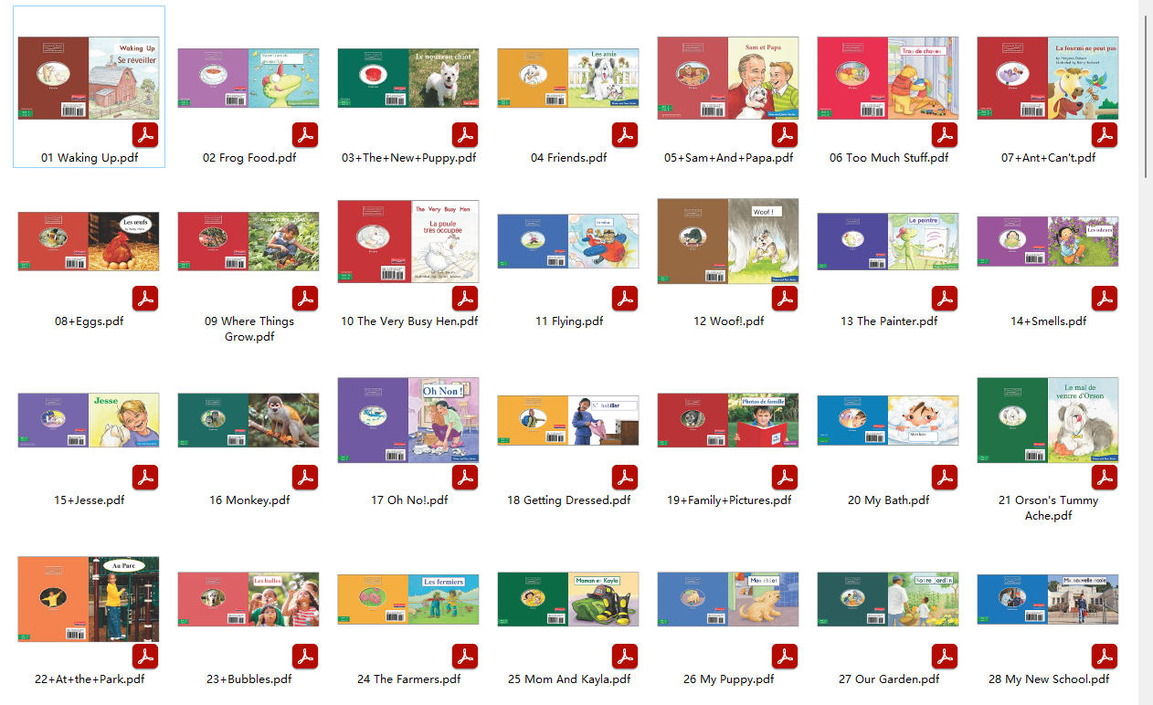 这套法语RAZ资源的核心是全套从AA到Z级别的PDF电子书,可以下载打印使用。它是根据风靡全球的英语RAZ分级阅...