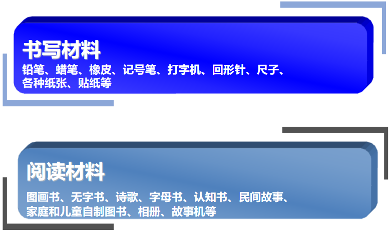 可以在阅读空间内准备如下材料: