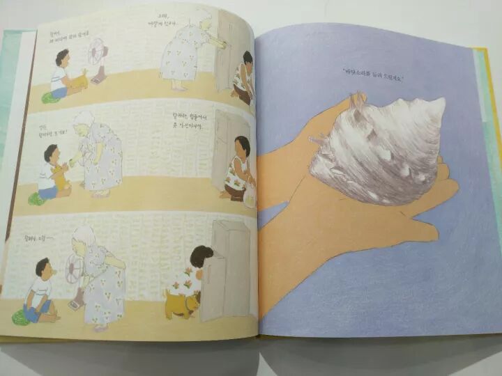 奶奶一直独自一人呆着,直到暑假儿孙们来探望。孙子给了奶奶一个海螺。奶奶听着海螺的声音,不知觉中和小狗一起去海边旅行......