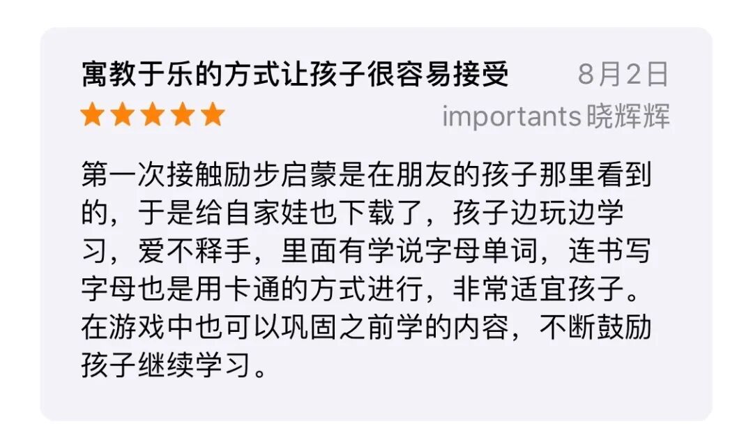励步的课程体系是阶梯式的,不同年龄对应不同的学习路径,从快乐启蒙到扎实基础到听读阶段到流利交际最后实现幼小衔接。零基础是从字母开始,结合生活场景,引发孩子的联想,不会生硬的去要求儿童启蒙早教动画片记背。
