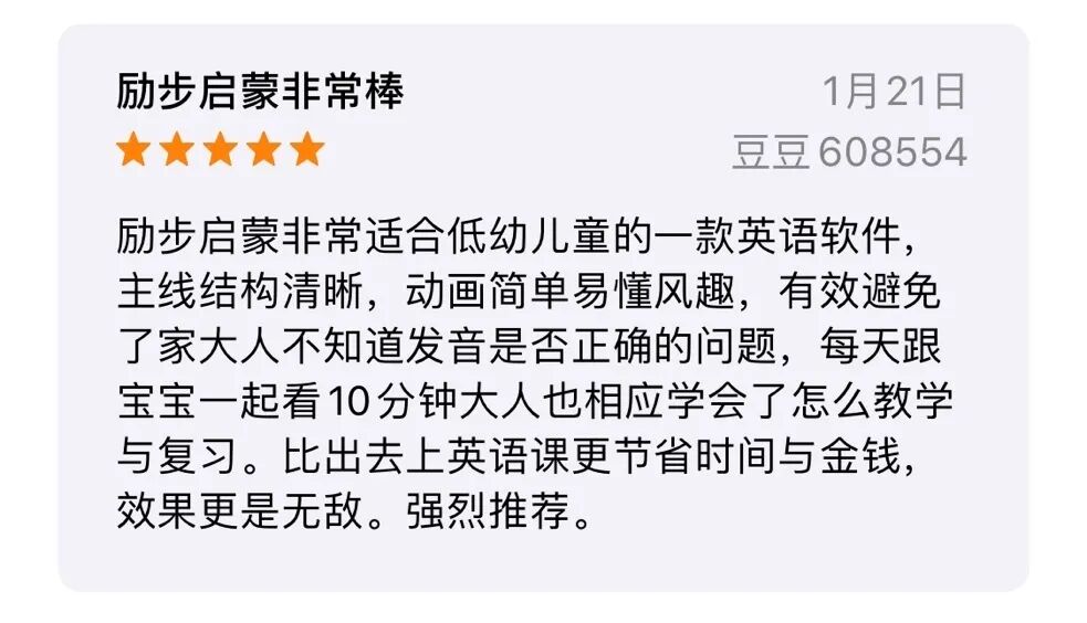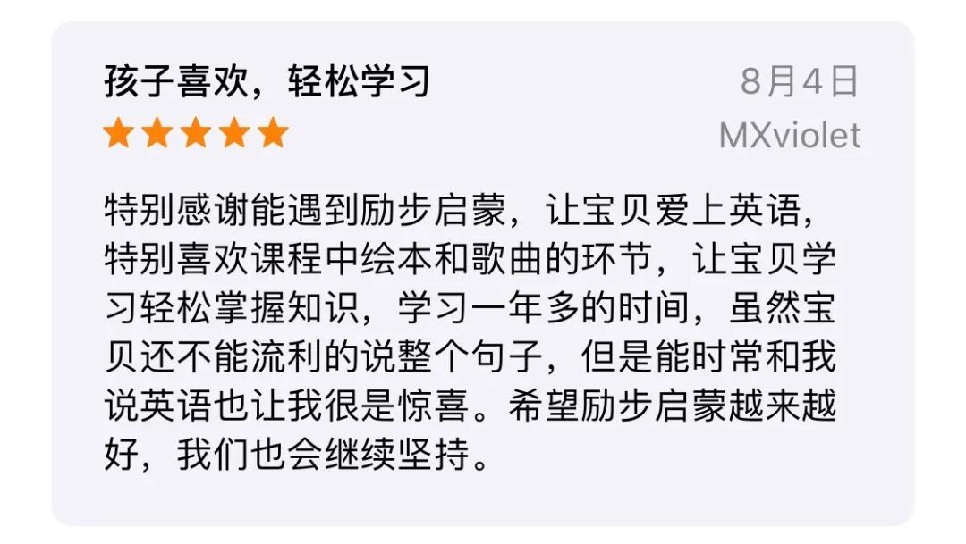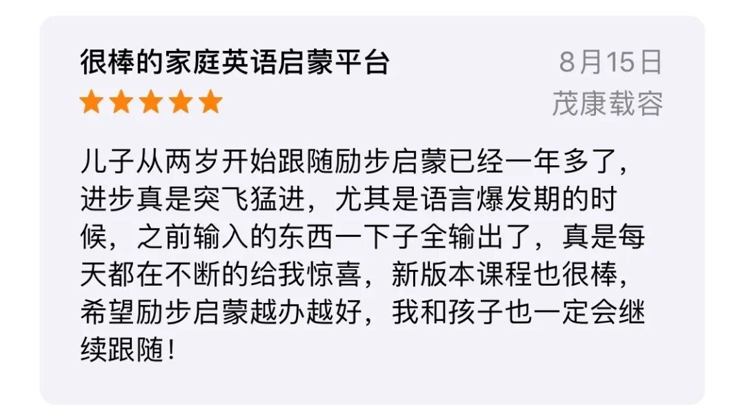 最后还是想说,无论是线上还是线下的学习课程,最终还是需要爸爸妈妈多花时间精力陪伴,提供家庭英语氛围(利用绘本、借助音频资源等),跟孩子共同学习,对于低龄的孩子来说,这样的效果最显著。