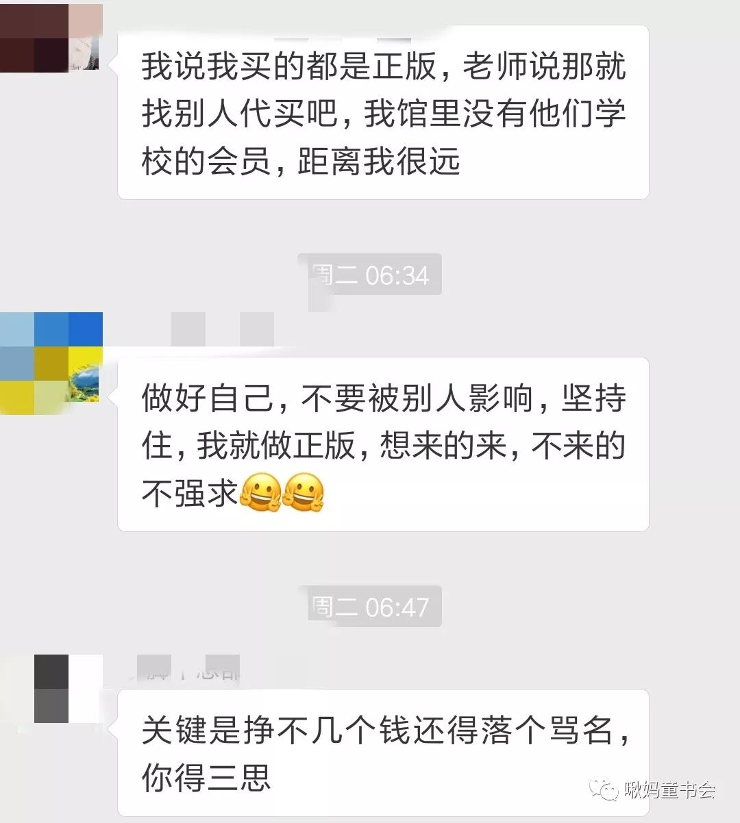 群里多是支持正版的绘本从业者,大家纷纷表示应该坚持自己,绝不购买盗版。