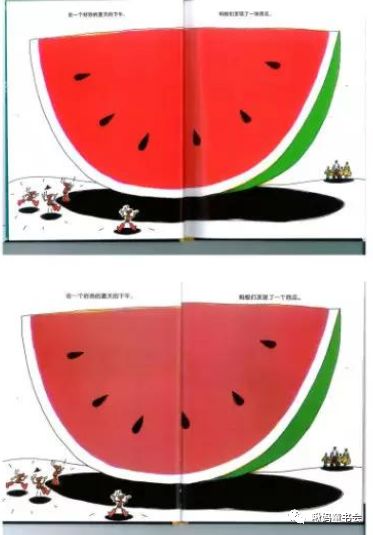 比如上面的《蚂蚁和西瓜》,除了颜色失真意外,在书籍的装订上也很有问题,左右图画没对齐。