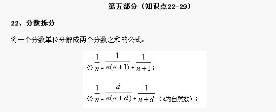 ②混循环小数小数部分化成分数:分子是第二个循环节以前的小数部分的数字组成的数与不循环部分的数字所组成的数之差,分母的头几位数字是9,9的个数与一个循环节的位数相同,末几位是0,0的个数与不循环部分的位数相同。