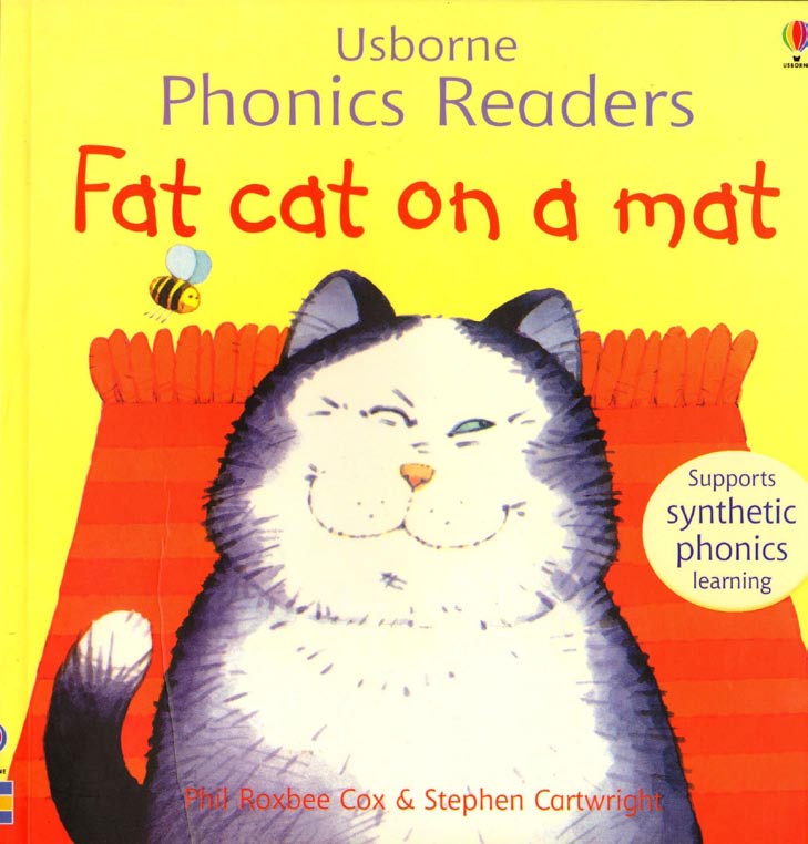 “Fat cat on a mat”,我指着标题念给她听。她跟着重复:“fat cat... on a mat...” 念着念着,自己笑了起来:“妈妈,好顺口啊!”