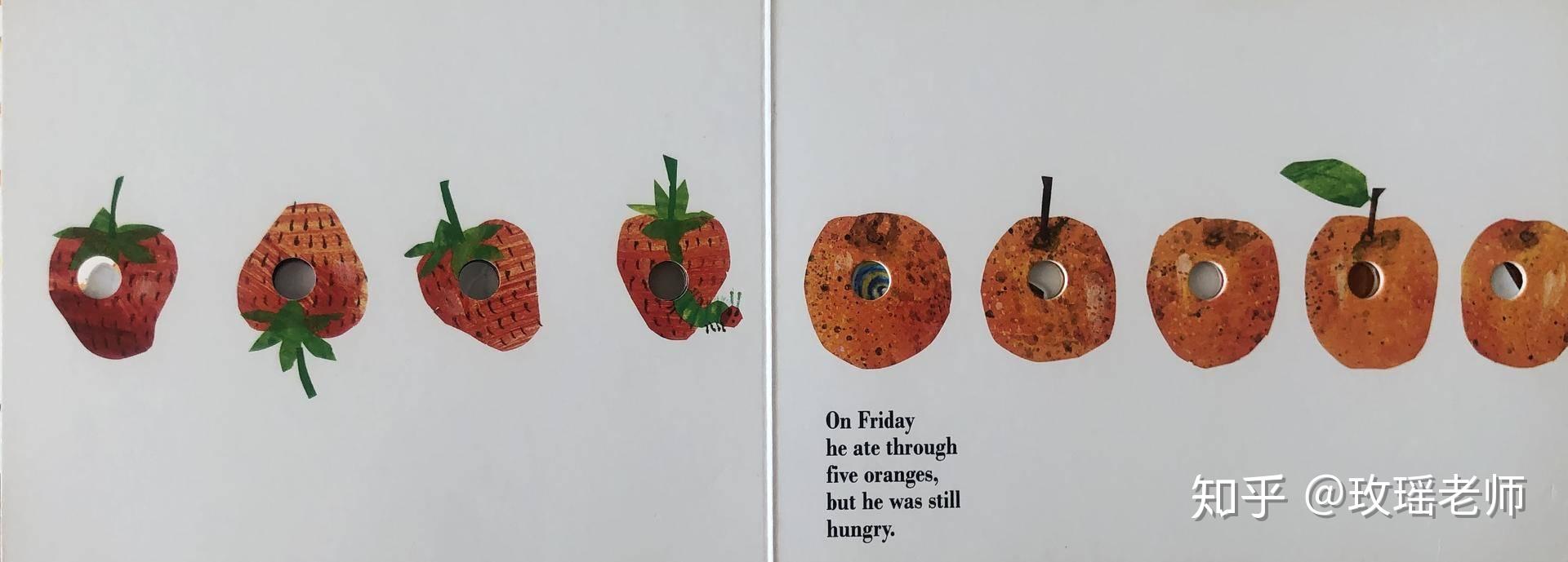 比如说著名的绘本作家Eric Carl老爷爷的《好饿好饿的毛毛虫》,我们可以运用一个毛毛虫的小指偶,或者用一条毛根条,来当作好饿的毛毛虫,“咬”出书中的小洞洞。这些都可以帮助孩子理解故事,建立起具体图像的思维。