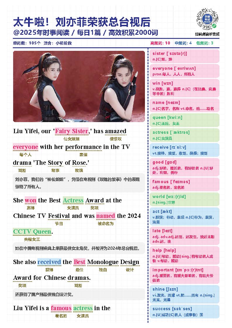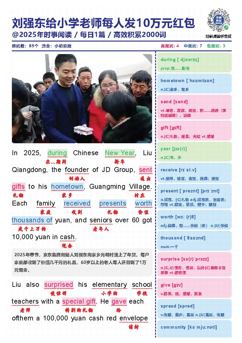 2025年时文短文+单词本+音频