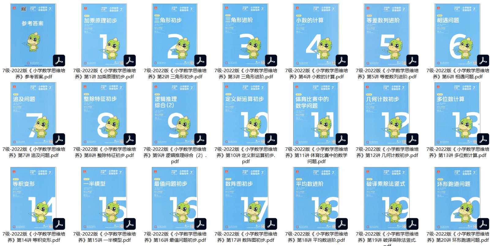 | 7级-2022版《 小学数学思维培养》参考答案.pdf | 90.3 MB |