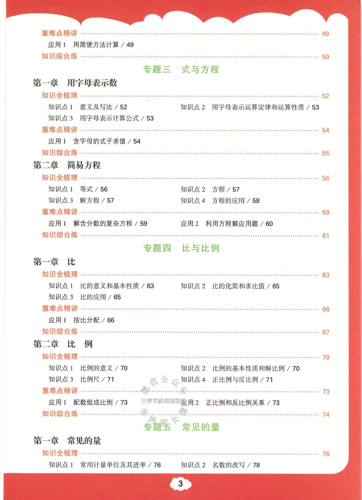 数学分册按照数与代数、图形与几何、统计与概率、应用题专项四大板块编排: