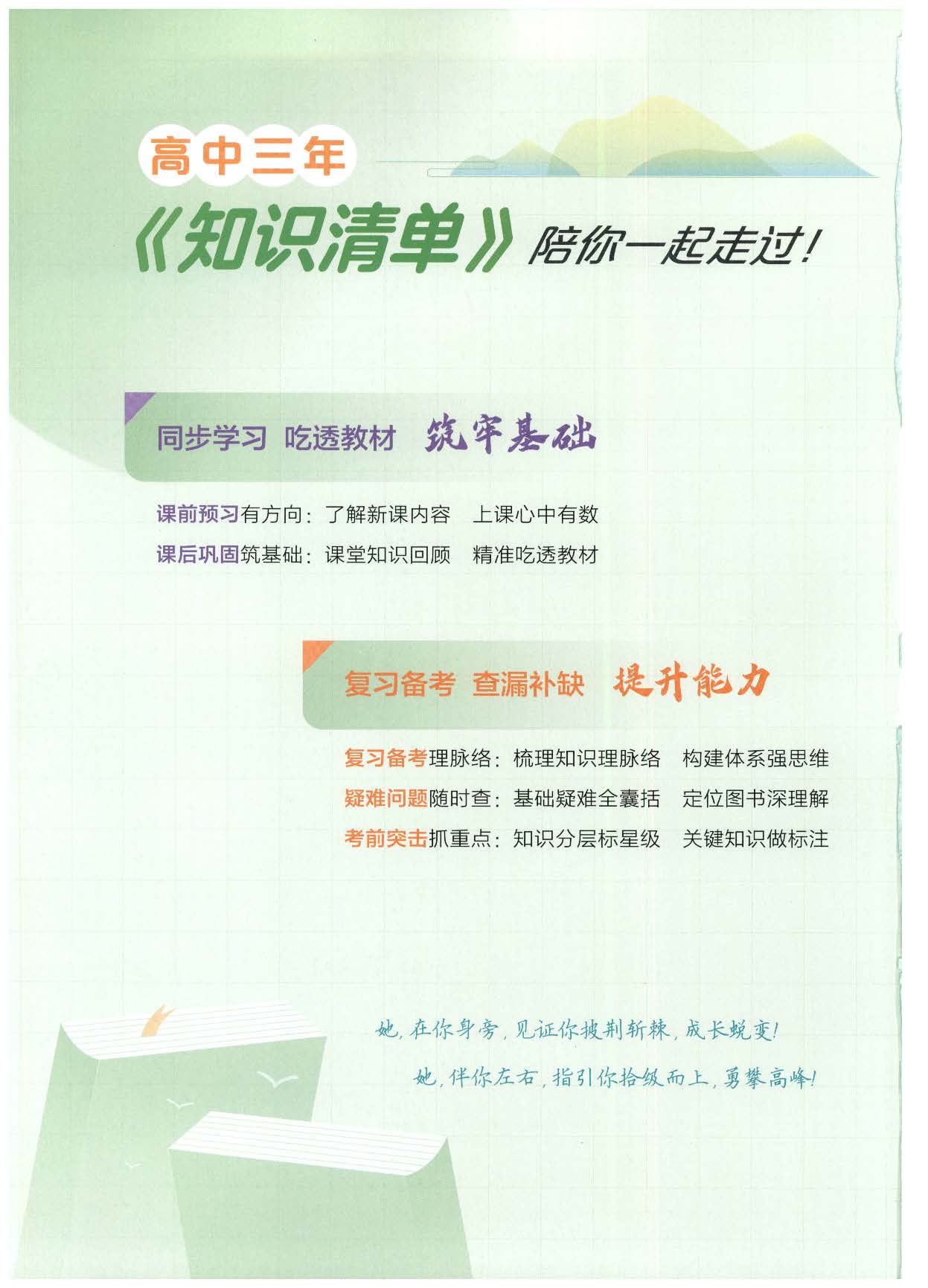 【2026新版】曲一线53高中知识清单全彩升级版!涵盖物化生、政史地六大核心科目,适合高一至高三全阶段使用。这套由金牌教研团队打造的备考利器,以全彩图解呈现知识脉络,搭配最新课标解读与命题预测。电子版采用高清印刷级PDF,支持平板批注与打印输出,让复杂公式、历史年表、地理图谱一目了然。不仅是知识手册,更是方法论指南,助你构建完整学科思维,决胜新高考!